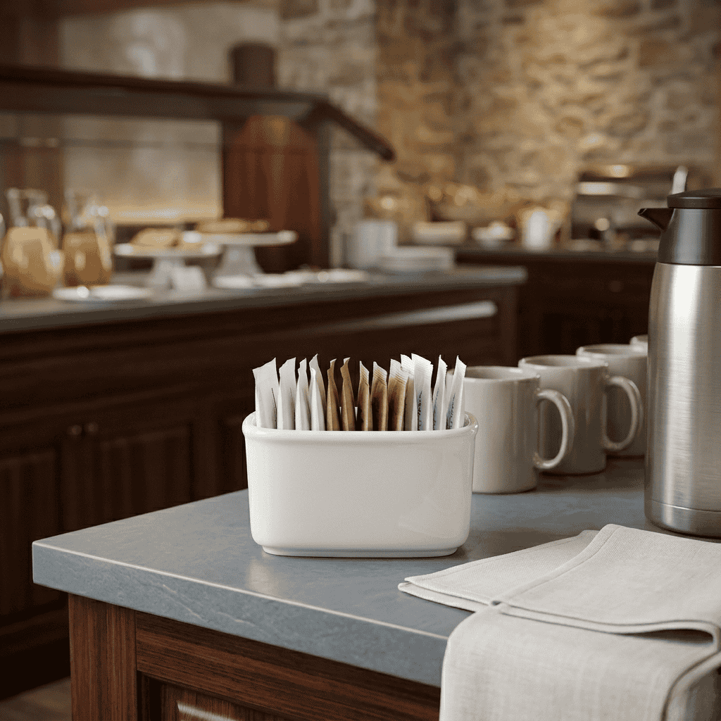 El azucarero para sobres de la línea Luna está diseñado para organizar y presentar de forma práctica y elegante los sobres de azúcar en el servicio gastronómico profesional. Su formato compacto permite mantener orden en mesa o estaciones de servicio, optimizando la experiencia del cliente.