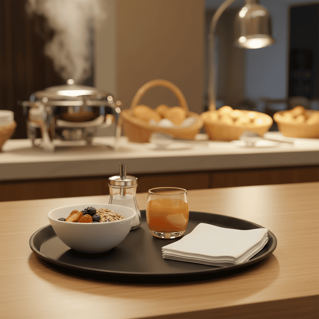 La bandeja de mozo 40,6 cm está diseñada para ofrecer estabilidad, control y eficiencia en el traslado profesional de alimentos y bebidas. Su superficie amplia permite transportar múltiples preparaciones de forma segura, optimizando el flujo de servicio en restaurantes, bares y eventos.