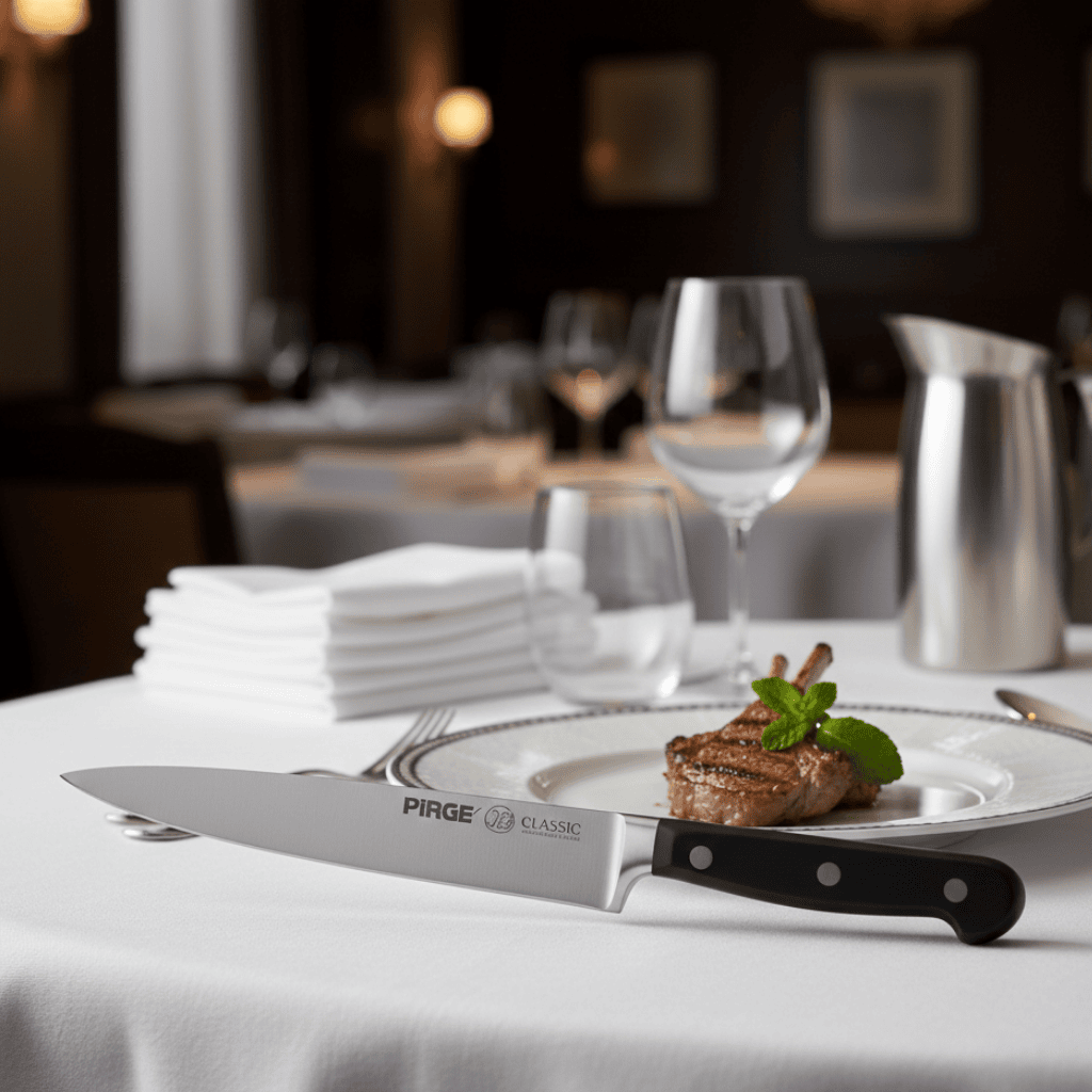 Fabricado en acero de alta calidad, este cuchillo está preparado para soportar el uso intensivo propio del entorno gastronómico, manteniendo filo y estabilidad estructural con el trabajo continuo. Su construcción sólida y ergonómica optimiza la maniobrabilidad, reduciendo la fatiga y aumentando la productividad en cocina.