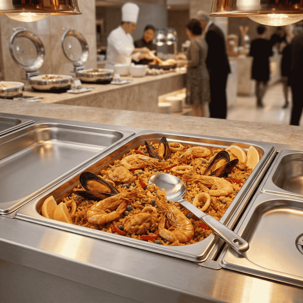 La fuente 2/1 Pan está diseñada para manejar grandes volúmenes con control y seguridad, siendo una pieza clave en mise en place, producción continua y servicios de alta rotación.