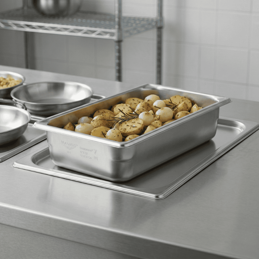 La Fuente Super Pan de 17 × 32 cm está diseñada para manejar preparaciones de volumen medio con precisión, facilitando el mise en place y la reposición ágil en líneas de servicio de alta rotación.