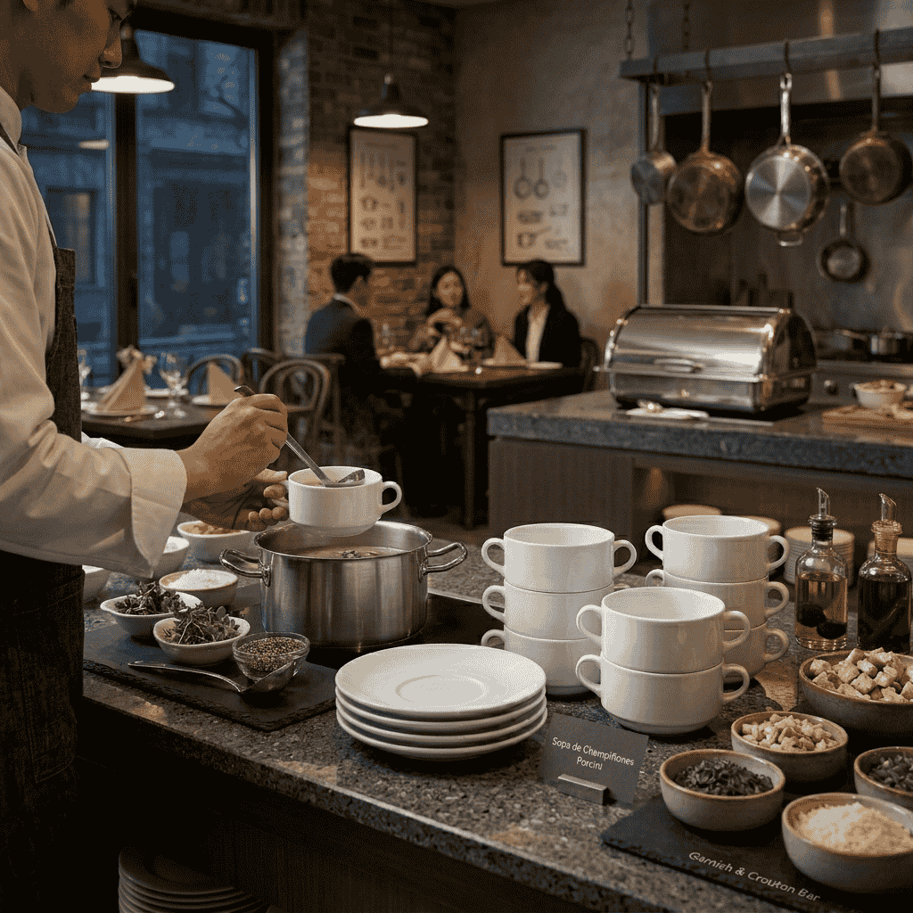 El platillo para taza de sopa de 16,1 cm de la línea Estoril está diseñado para ofrecer una base estable y elegante en el servicio de caldos y consomés profesionales. Su formato ha sido dimensionado con precisión para complementar la taza de sopa de la misma colección, garantizando una presentación cohesiva y funcional que evita derrames y protege la superficie de la mesa.