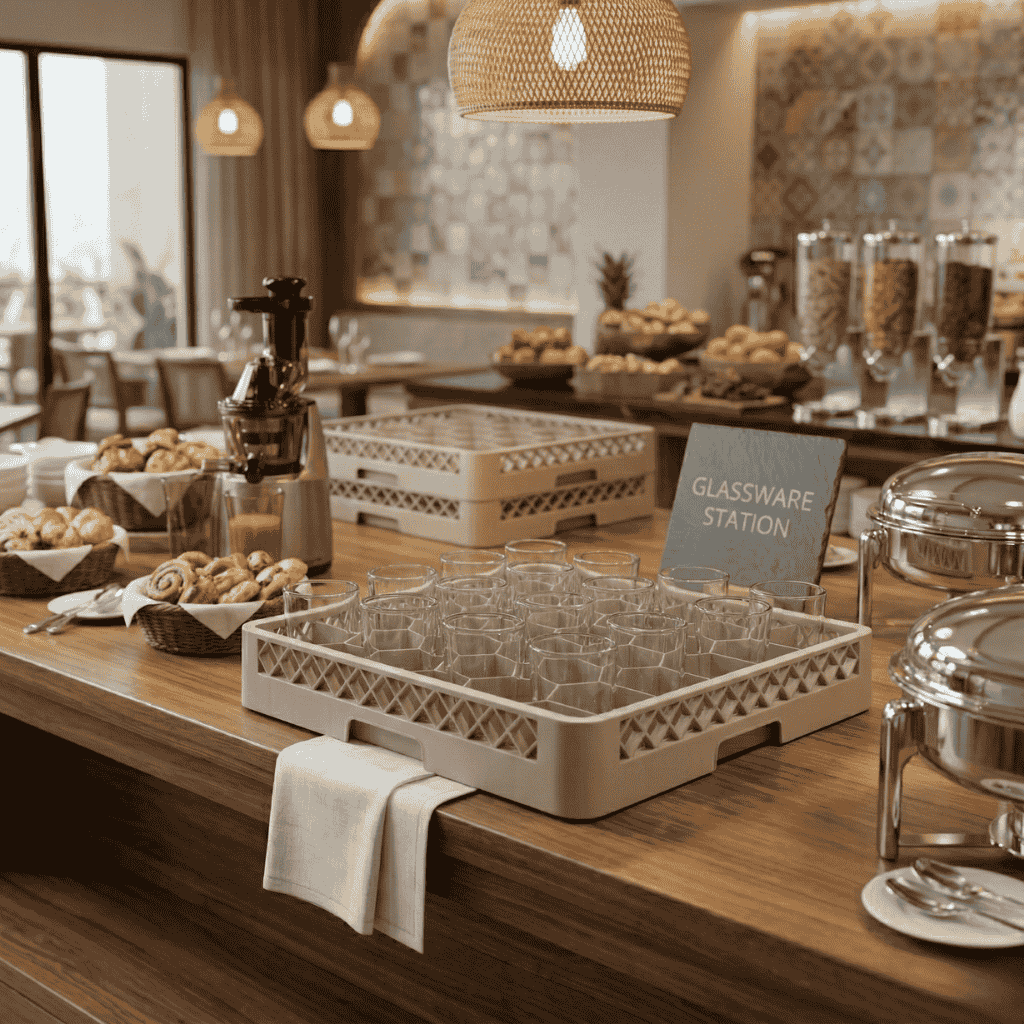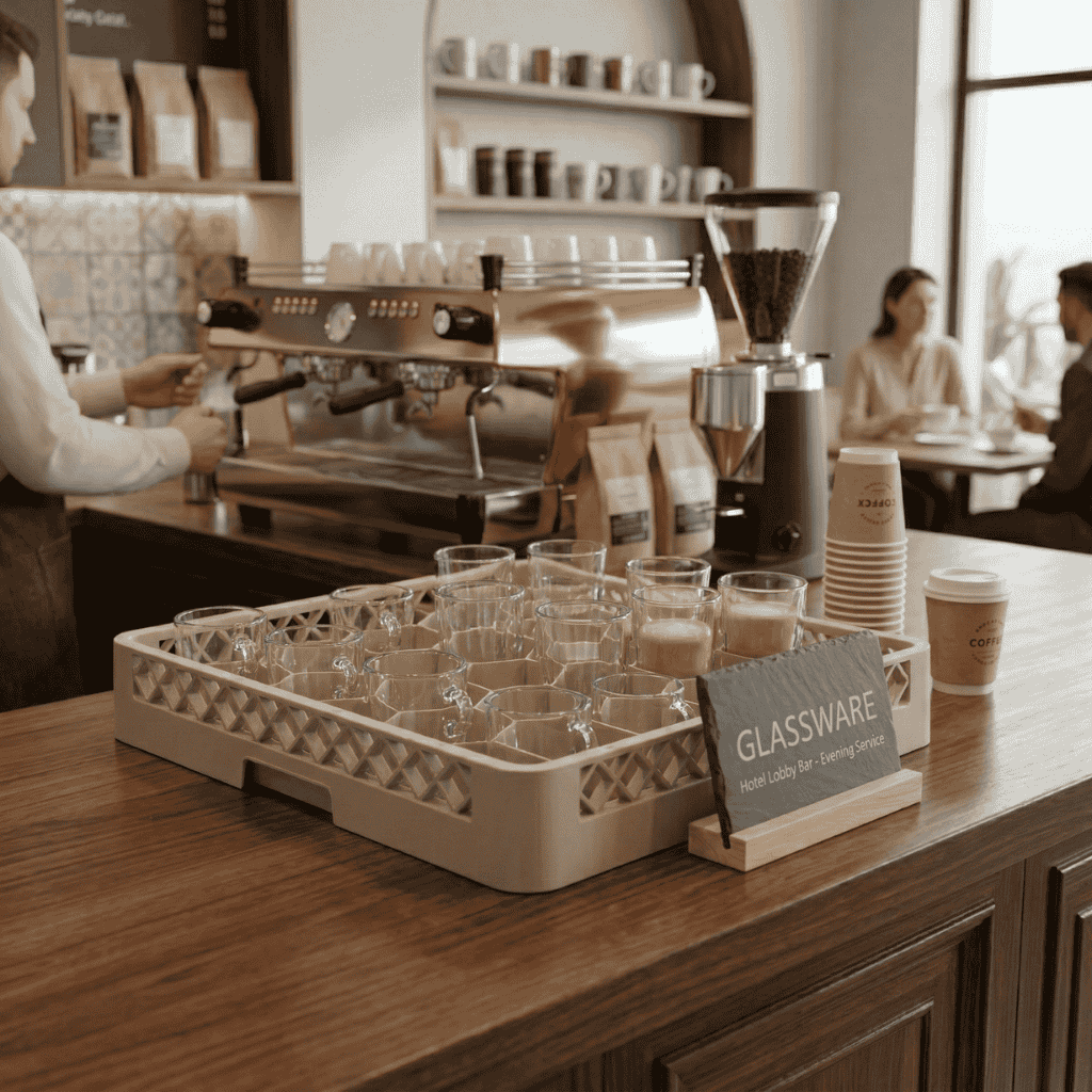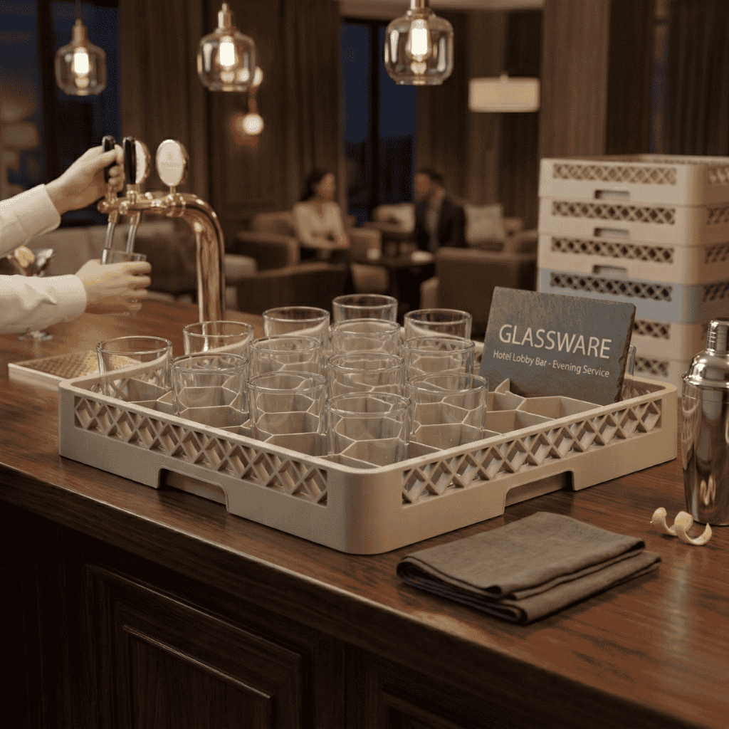 El rack de 36 unidades está diseñado para maximizar carga y proteger la cristalería, manteniendo cada pieza firme y correctamente separada durante el lavado, secado y transporte.